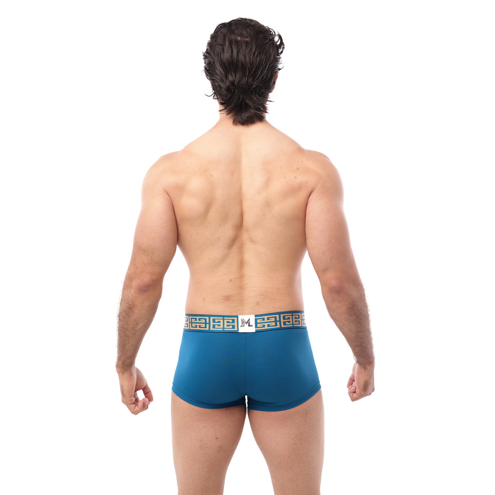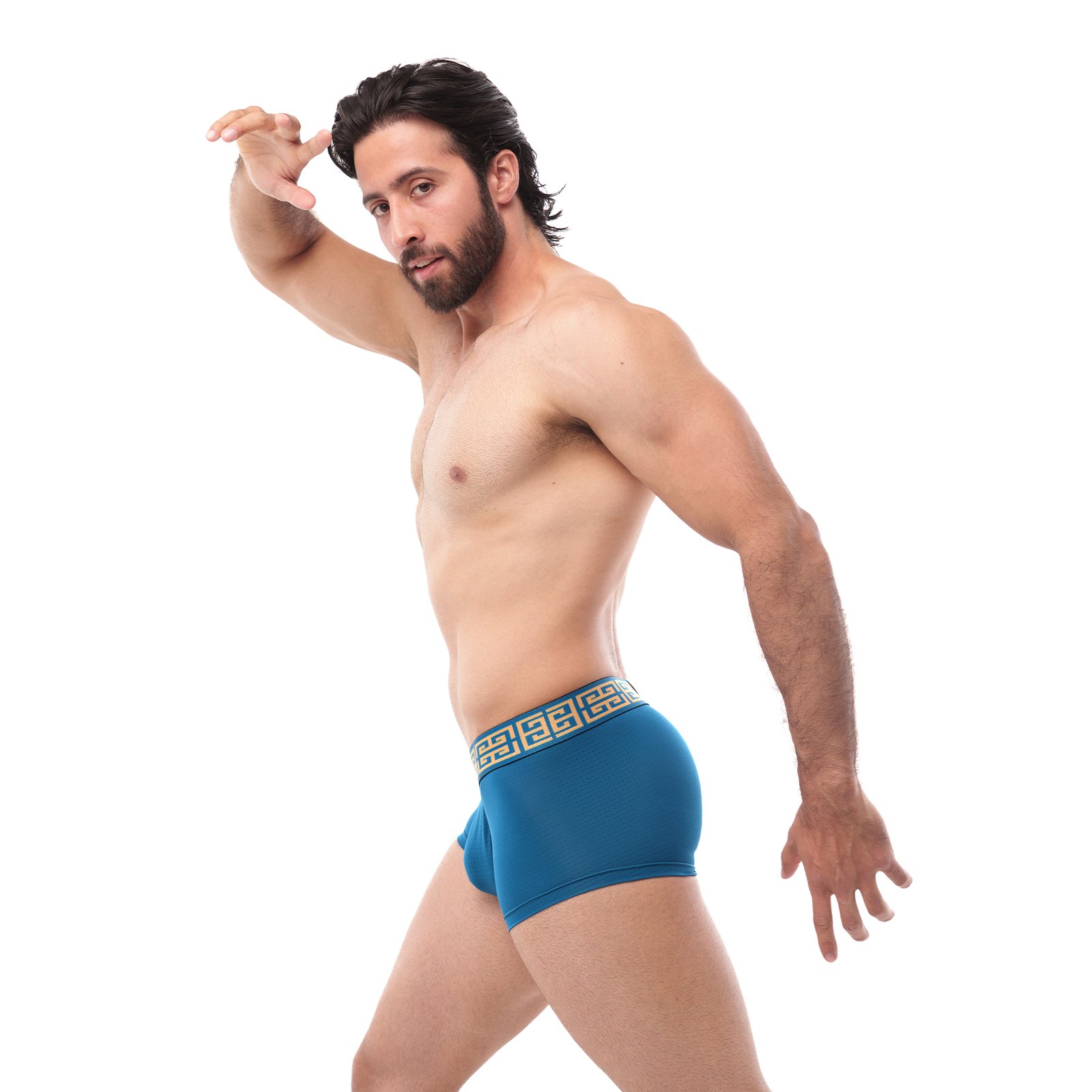 La fuerza de la elegancia masculina se refleja en este boxer premium creado para hombres que buscan proyectar seguridad y sensualidad con un estilo único. El azul petróleo transmite sofisticación y carácter, mientras el elástico con grecas doradas celebra la exclusividad de una edición limitada de aniversario. Una prenda que combina comodidad superior con un diseño que habla por sà mismo.