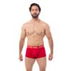 Descubre la seguridad y el estilo que mereces con este boxer masculino premium. Diseñado para hombres que saben proyectar sensualidad y confianza, esta prenda combina comodidad absoluta con un toque exclusivo gracias a su edición limitada de aniversario. El rojo intenso transmite energÃa y pasión, mientras el elástico con grecas doradas añade un detalle sofisticado que eleva tu look desde dentro.