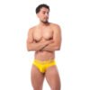 La energÃa masculina se viste de luz con este brief premium pensado para hombres que saben destacar con estilo y seguridad. El amarillo transmite vitalidad y confianza, mientras el elástico con grecas doradas celebra la exclusividad de una edición limitada de aniversario. Una prenda que combina sensualidad moderna con comodidad superior, diseñada para quienes buscan marcar diferencia desde lo más Ãntimo.