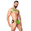 Vibrante, atrevido y con mucha actitud. Este suspensorio en color verde intenso está diseñado para quienes buscan destacar con un look fresco y provocador, realzando la figura masculina con seguridad y carácter 💪😈. Una prenda que combina fuerza visual y diseño moderno.